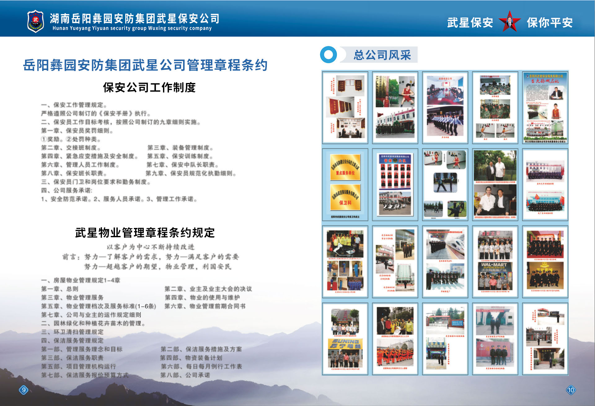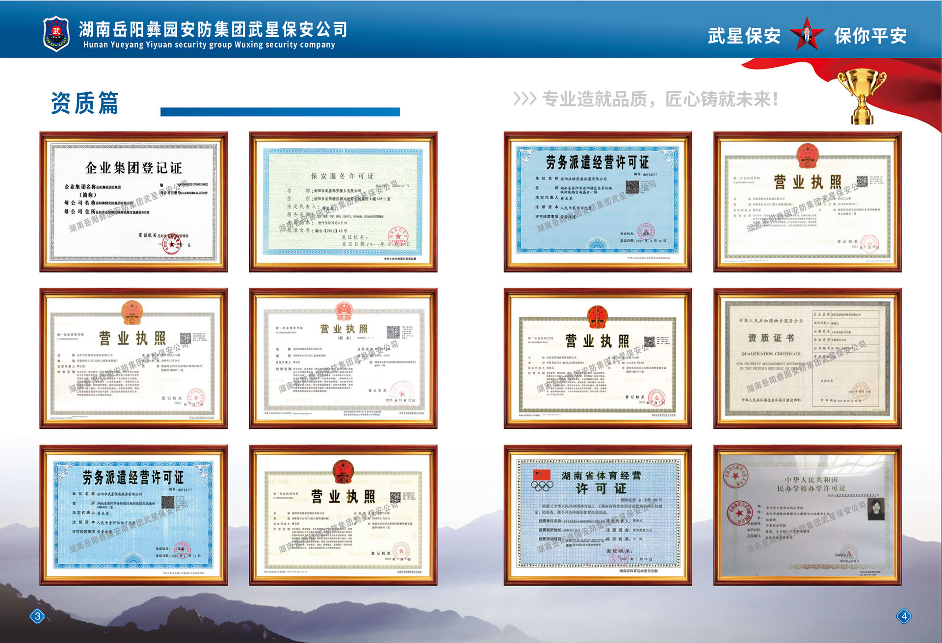 2017年6月正式成立了《岳陽彝園安防集團(tuán)》,下設(shè)《武星保安公司》、《武星物業(yè)公司》、《洪橋勞務(wù)派遺公司》、《保鏢保安武術(shù)職業(yè)培訓(xùn)學(xué)校》等子公司